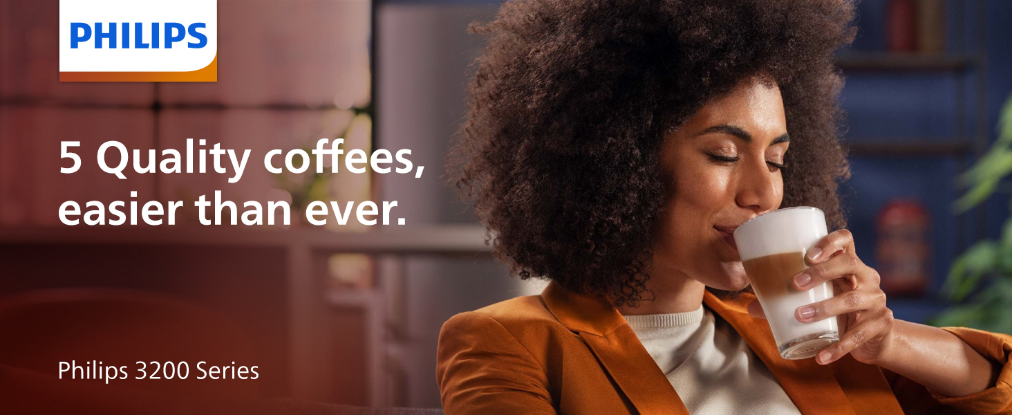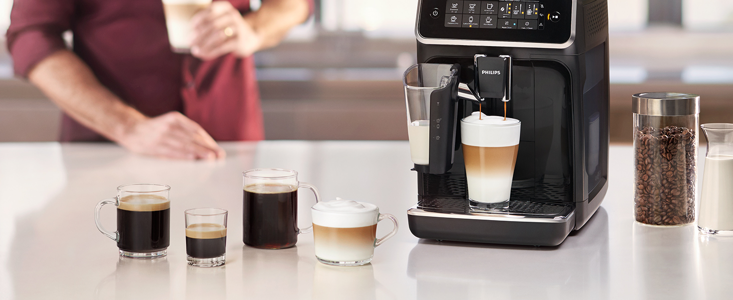 • With Philips 3200 Series enjoy the delicious taste and aroma of coffee from fresh beans at the perfect temperature.Pump pressure : 15 bar. Adjustable spout height : 85-145 mm. Aroma Seal : yes. Guided descaling : yes. Cord length : 100 cm..Recyclable packaging material : >95 %. ECO setting : Yes.
