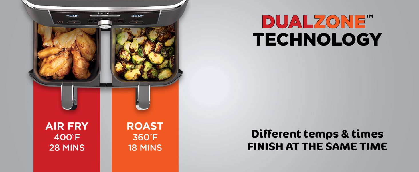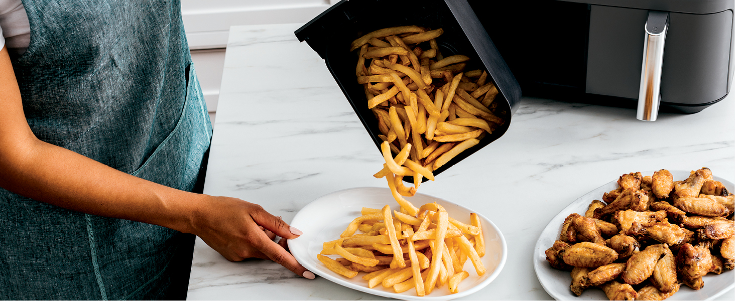 SEPARATE HEATING ZONES:2 independent XL 5-qt. zones have their own cooking baskets. cyclonic fans. and rapid heaters.