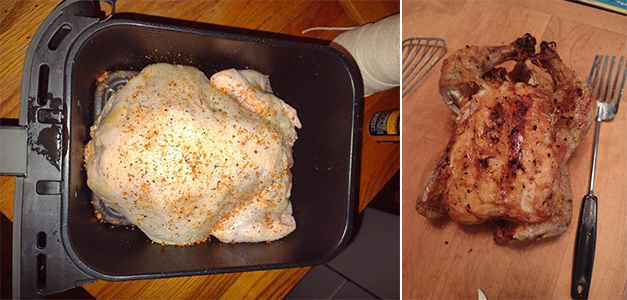 I have owned 2 other air fryers. both manual operation because of the loud beeps that digital ones have made. But this one is different. the only time it beeps with when you really need it to beep. mainly when the timer is done. I was afraid of a long learning curve. but it is actually very easy to operate. whether using one or both baskets. The inserts in the bottom of the baskets are tight enough that they don't fall out when draining the grease. yet not too hard to pull out to wash. I was skeptical about one basket fitting a whole chicken. but it did fit my 4/5 lb chicken. the only problem I had was turning it halfway through. I needed help. I think I will invest in a large pair of tongs for this task. I have made several other dishes like bacon (nice and crispy). chicken thighs. french fries. baked potatoes. chicken breasts and steak. Everything turned out crispy and delicious. I am glad that I only need this air fryer now instead of the other two. especially since this takes up quite a bit of counter space. the only downside I could find to this great air fryer.