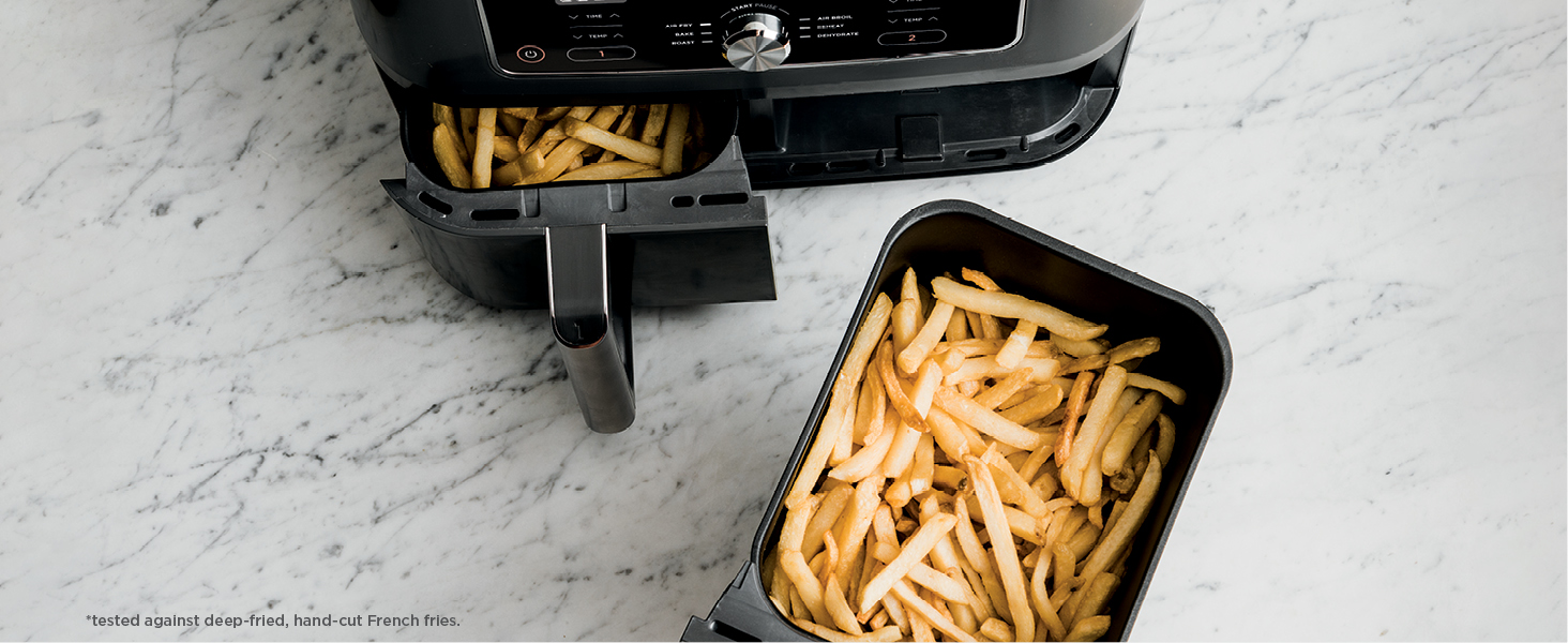 LESS FAT: Up to 75% less fat than traditional air frying methods*. *Tested against hand-cut. deep-fried French fries.